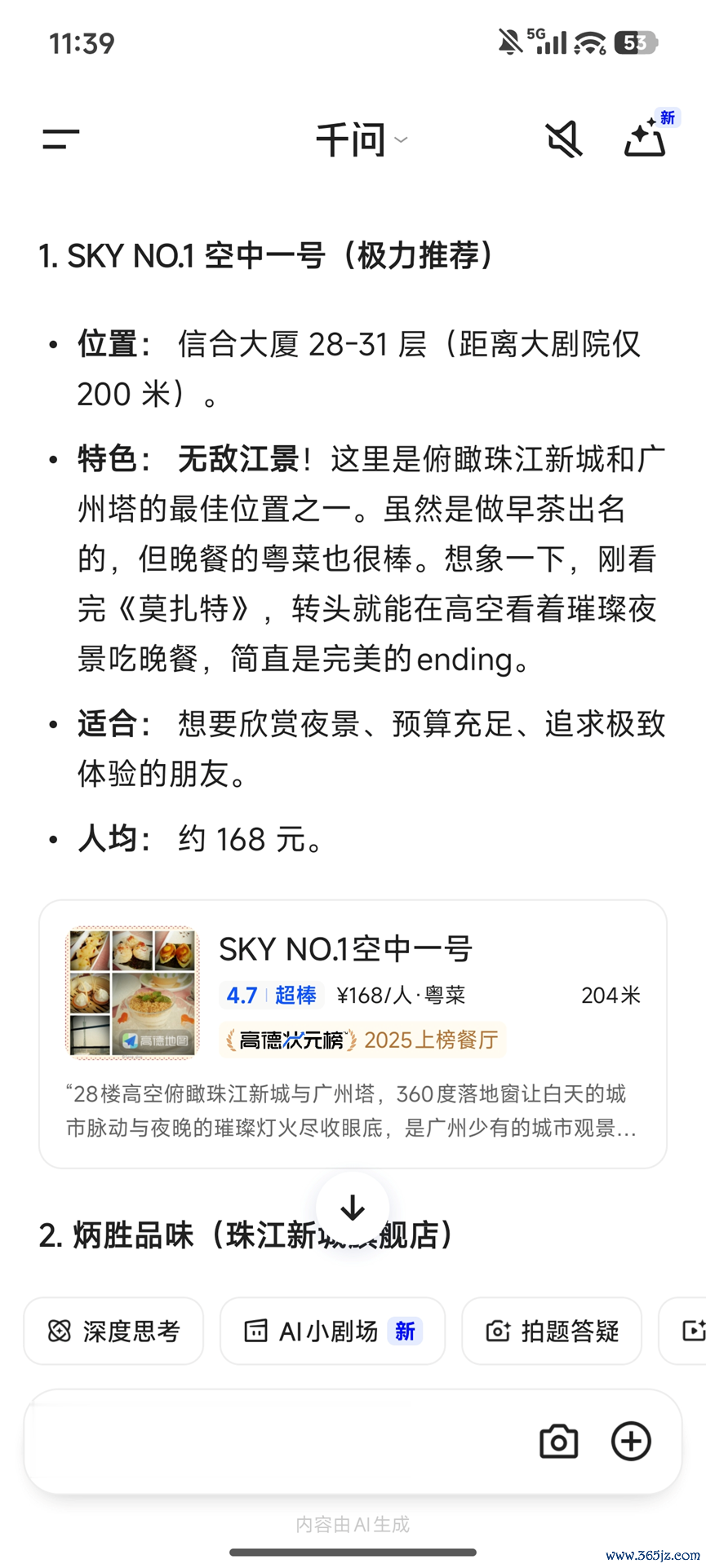 另外,要是用户让千问保举某场合的隔邻餐厅,那么千问也会径直调用高德扫街榜的数据,给出一张高德卡片,用户点击之后不错跳转到高德稽察餐厅信息和用户评价,并进行导航。